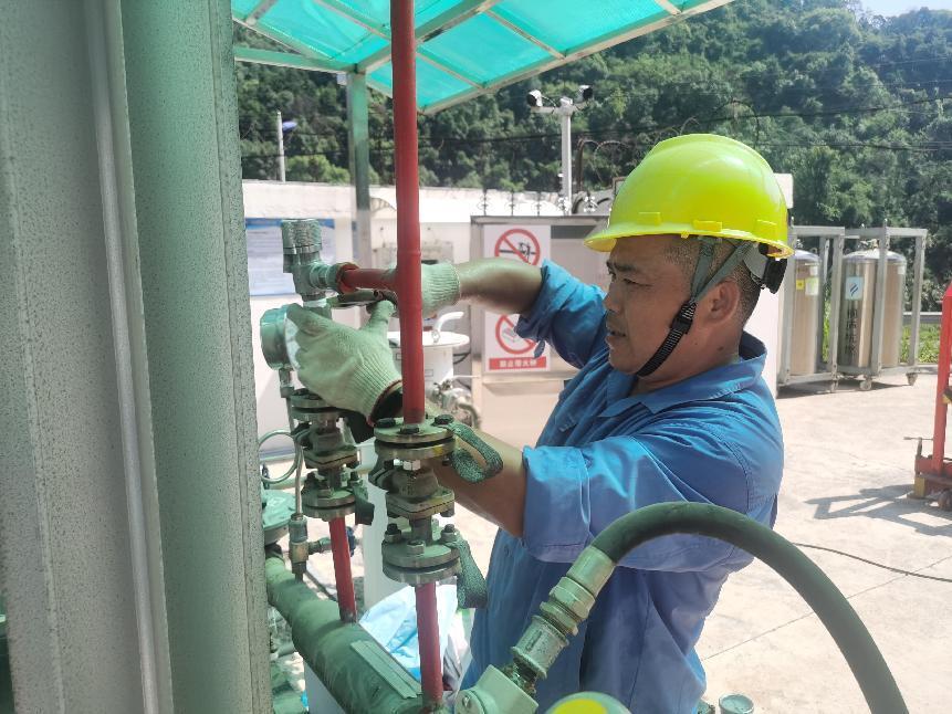 8月8日早上6點(diǎn),場(chǎng)站設(shè)備維護(hù)員江曉軍、查浩雷便早早驅(qū)車前往分水站及大莊站更換安全閥。露天更換安全閥,就像是在經(jīng)歷一場(chǎng)大“烤”驗(yàn),陽(yáng)光把場(chǎng)站金屬設(shè)備曬得滾燙,戴著厚厚的手套仍能感受到設(shè)備上炙熱的溫度,止不住的汗水將淡藍(lán)色工作服“染”成了深藍(lán)色。但他們始終保持著熱情和專注,嚴(yán)格按照操作規(guī)程進(jìn)行作業(yè),做好每一個(gè)細(xì)節(jié),順利完成全部安全閥的更換。