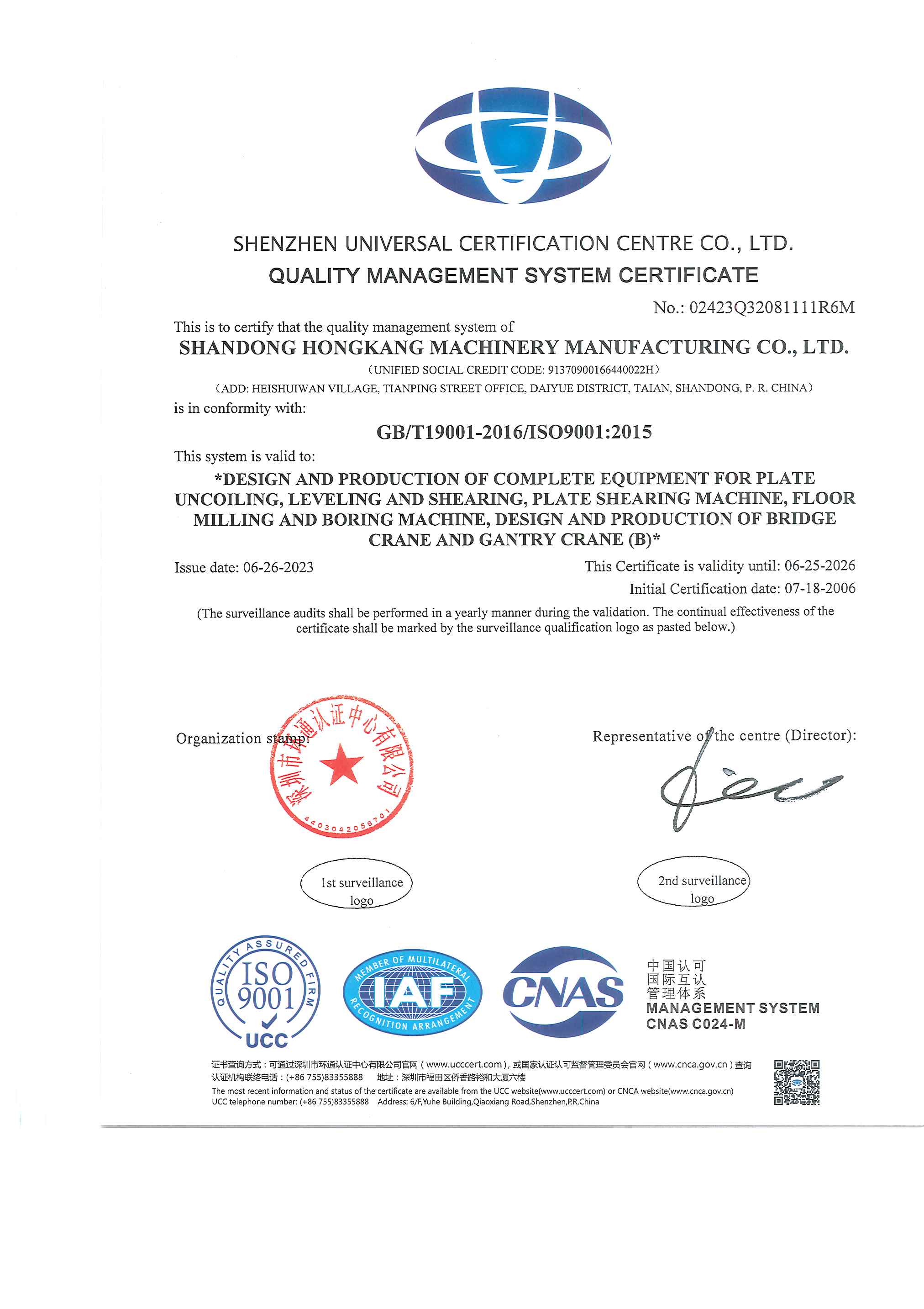質量管理體系認證證書